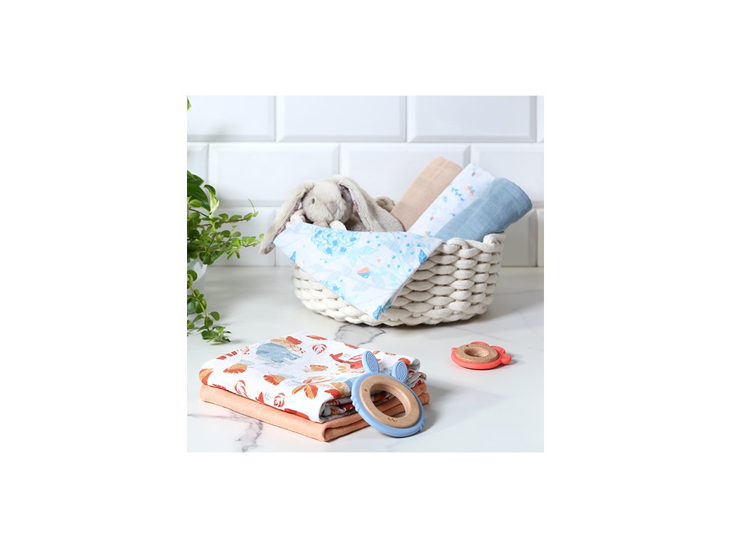 Mušelín je dvouvrstvá gázovina ze 100% bavlny, která je mimořádně lehká a vzdušná. Plenky z tohoto materiálu lze používat již od prvních dnů života - jako zavinovačku, lehkou přikrývku, přebalovací podložku, prostěradlo či ručník. Skvěle se hodí jako přikrývka při kojení nebo jako podložka na ruku rodiče k ochraně oblečení při krmení či odříhnutí děťátka.