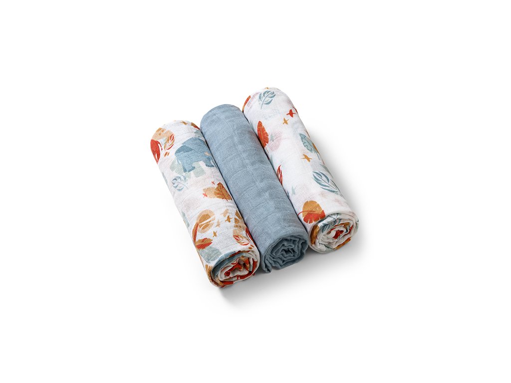 • Sada obsahuje 3 ks plenek: 2 z nich jsou zdobeny barevným potiskem, třetí je jednobarevná bez vzoru